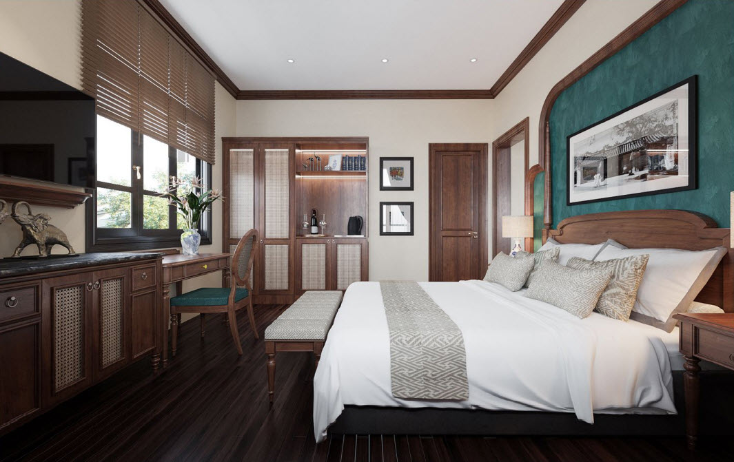 View details..The elegant 1930s Indochina heritage-style Anmira Junior Suite includes a spacious bedroom area combined with a delightful living room to give a feeling of home as well as luxury. Soak up the tranquility of your natural surroundings with an indoor rain shower.